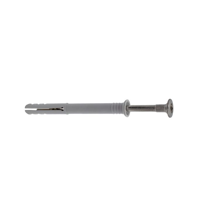 Der Artikel besteht aus einem Kreuzschlitznagel, Stahl blau verzinkt und einer Dübelhülse aus Nylon mit Senkkopf.